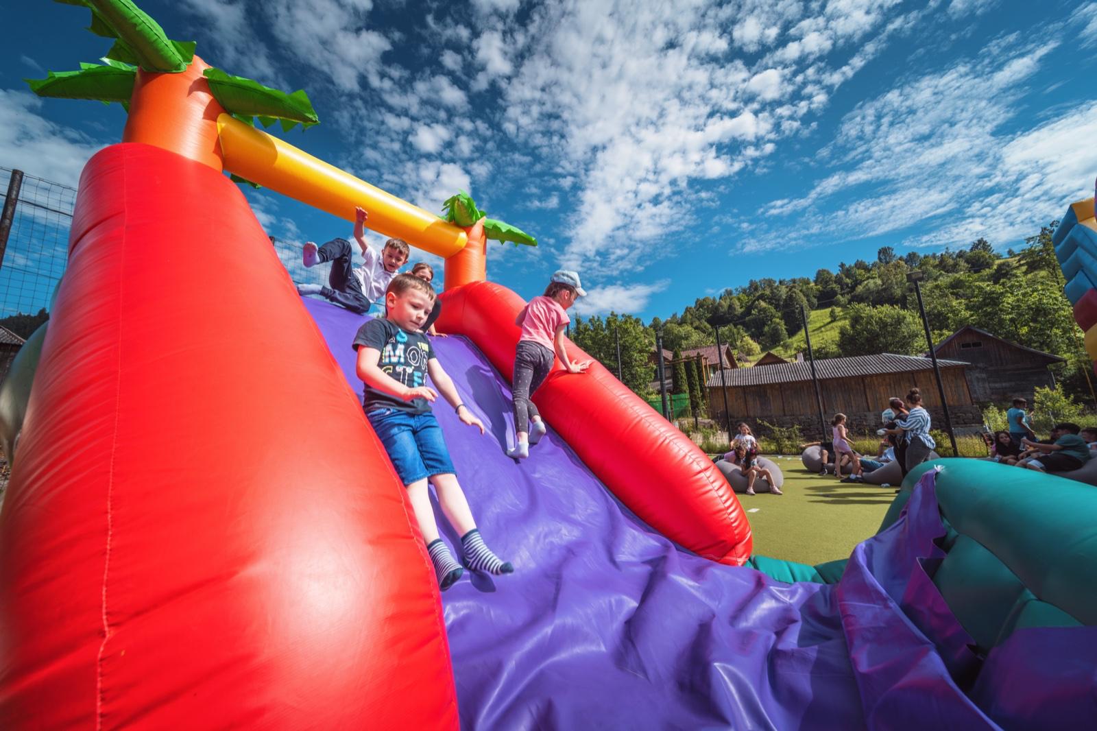 Imaginați-vă o aventură captivantă cu Toboganul cu obstacole Mickey – un ansamblu vibrant și plin de distracție pentru copii!